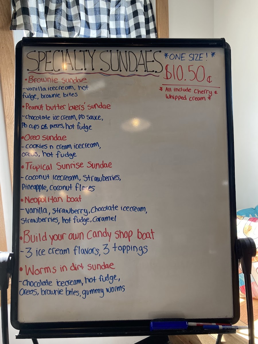 From a reviewer’s perspective, the menu at Scoops Of Hope offers a cozy mix of classic treats and creative specialties that make for a satisfying sweet stop. The Specials, like the Vanilla Frappe, provide a simple, refreshing option, while the Specialty Sundaes-such as the Peanut Butter Lovers' Sundae, Oreo Sundae, Tropical Sunrise Sundae, Neopolitan Boat, and Worms In Dirt Sundae-bring a playful and indulgent variety that stands out on the menu. The Flavors selection includes familiar favorites like Chocolate and Strawberry, alongside more unique options like Cafe Con Leche, Nsa Mixed Berry, and Nsa Vanilla, giving customers both traditional and alternative choices. Beyond ice cream, the menu also features comforting desserts and seasonal drinks like Fresh Baked Pie, Apple Dumplings, and Mulled Cider, rounding out the offerings with warm, homemade-style options. Overall, the menu feels well-balanced, with fun sundae creations, classic flavors, and a few baked treats that make the experience feel more complete and memorable.